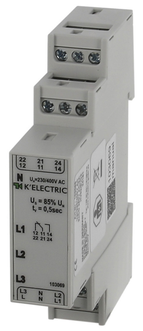 | Kurzbeschreibung | Unterspannungsmessrelais 3 LED mit Phasenanzeige, 2 Wechsler |