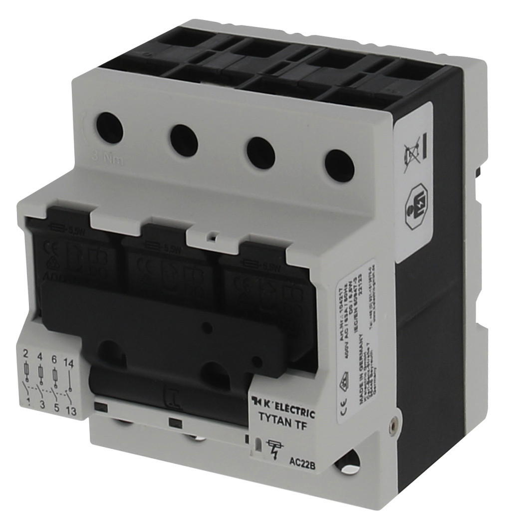 | Kurzbeschreibung | TYTAN TF D0-Sicherungslasttrennschalter 3-polig mit Hilfsschalter, 4TE breit |