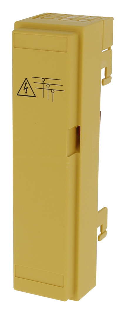 Kurzbeschreibung Anschlussklemmenhaube gelb incl. Schienenschutz