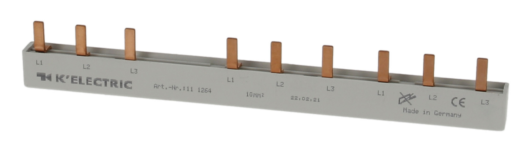 | Kurzbeschreibung | Steg-Verdrahtungsschiene, 3-polig, 10mm², 9TE, 4.pol.FI (N rechts) + 6xLS, zzgl. Metallzuschläge |