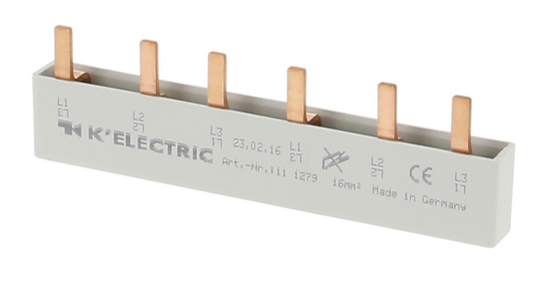 | Kurzbeschreibung | Steg-Verdrahtungsschiene, 3-polig, 16mm², 6TE, zzgl. Metallzuschläge |