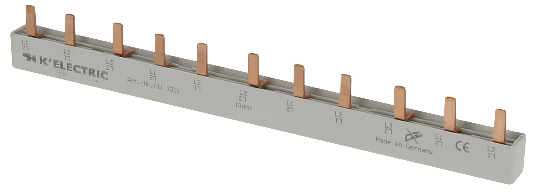 | Kurzbeschreibung | Steg-Verdrahtungsschiene, 3-polig, 10mm², 11TE, 4.pol.FI (N links) + 8xLS, zzgl. Metallzuschläge |