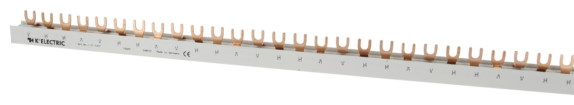 | Kurzbeschreibung | Gabel-Verdrahtungsschiene, 4-polig, 16mm², 56TE, zzgl. Metallzuschläge |