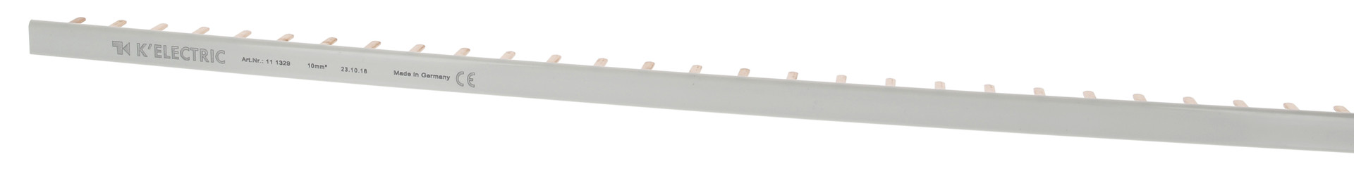 Steg-Verdrahtungsschiene, 1-polig, 10mm², 57TE, 90° gebogen, iso, zzgl. Metallzuschläge