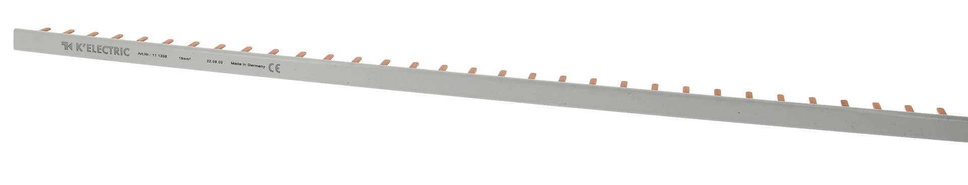 Steg-Verdrahtungsschiene, 1-polig, 16mm², 57TE, 17,6mm, 90° gebogen, iso, zzgl. Metallzuschläge