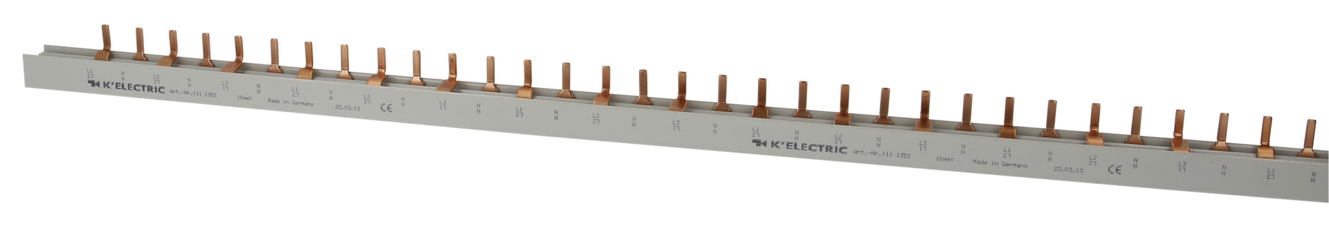 | Kurzbeschreibung | Steg-Verdrahtungsschiene, 4-polig, L1,N,L2,N,L3,N, 10mm², 54TE, zzgl. Metallzuschläge |