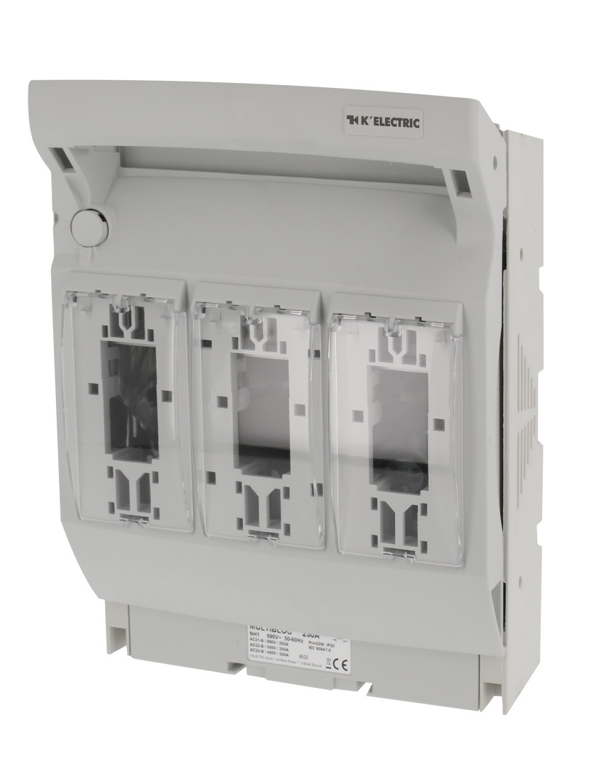 | Kurzbeschreibung | NH 1 Aufbau-Lasttrennschalter Multibloc 250A, 3-polig, Anschlussschrauben M10 |