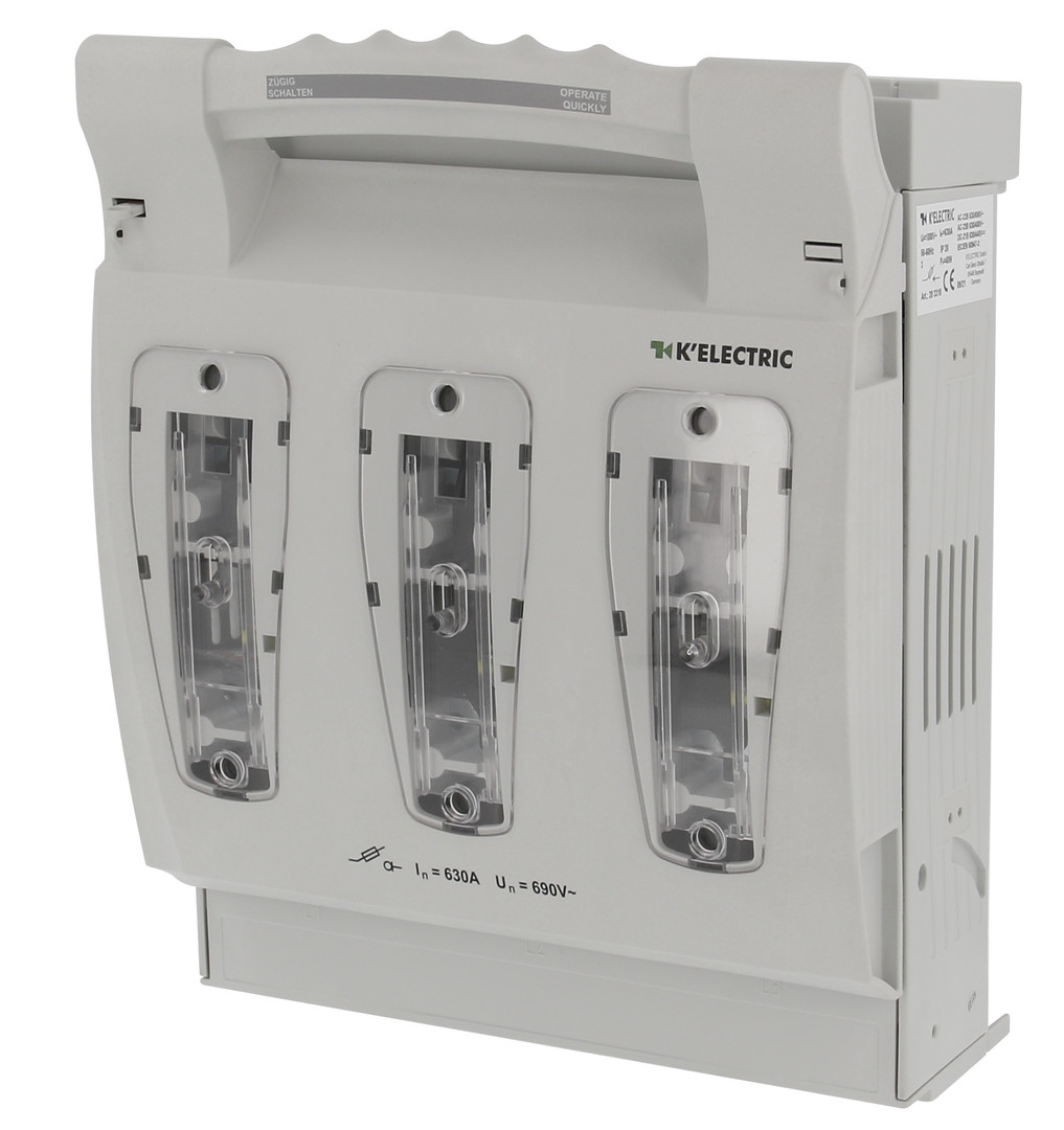| Kurzbeschreibung | NH 3 Aufbau-Lasttrennschalter KE 630A, 3polig, Anschlussschraube M12 |