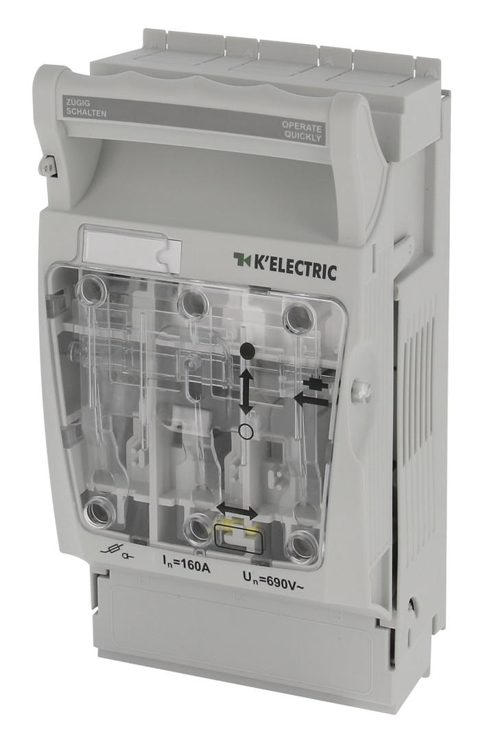 | Kurzbeschreibung | NH 00 Reiter-Lasttrennschalter 160A, 3pol., KE Abgang unten, Schraube |