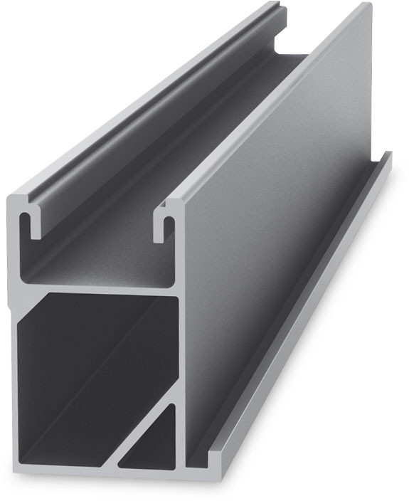 Montageschiene mit seitlicher Anbindung und statischem Nachweis in K2 Base. Variabel einsetzbar für verschiedene Dachanbindungen. Für große Spannweiten. Länge 6,10 m. Material: Aluminium EN AW-6063 T66