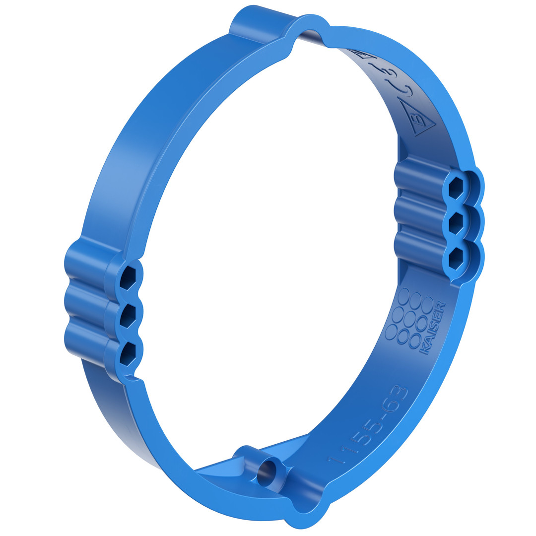 Putzausgleich-Ring für Unterputz/Mauerwerksinstallation, Putzausgleich-Ring für Unterputz-Gerätedose nach DIN EN 60670/VDE 0606 und DIN 49073, aus Kunststoff, Installationsöffnung Ø 60 mm, Tiefe 12 mm, Schutzart IP 20 nach DIN EN 60529, flammwidrig nach DIN EN 60695 bis 650° C, halogenfrei nach DIN VDE 0604-2-100, für Unterputzinstallation, mit 2 x 3 Schraubdomen, mit 2 Geräteschrauben