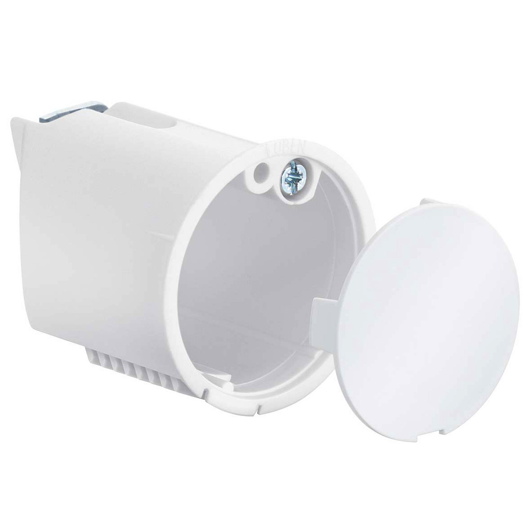 Wandleuchten-Anschlussdose mit Deckel, luftdicht, Tiefe 45 mm, halogenfrei (9248-77). Installationsart: Basis-Installation | Halogenfrei: Ja | Anwendungsgebiet: Für Leitungsauslässe | Anwendungsgebiet: Für Wandleuchten | Tiefe: 45 mm | Fräsloch Ø: 35 mm