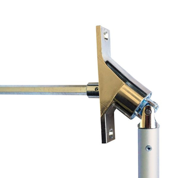 Diese klappbare Nothandkurbel wird zur manuellen Bedienung von NHK-Motoren benutzt, falls die Spannungsversorgung des Motors einmal unterbrochen ist. Diese Kurbel ist für den Verbleib an der Anlage gedacht und kann nicht abgenommen werden. Sie hat eine Gesamtlänge von 1200mm und die Einführung in den Rollladenkasten stellt ein 45°-Metall-Gelenklager dar. Die Aufnahme am Motor muss für einen 7mm-Sechskant ausgelegt sein. Kurbelfarbe: weiß, Gelenkfarbe: silber
