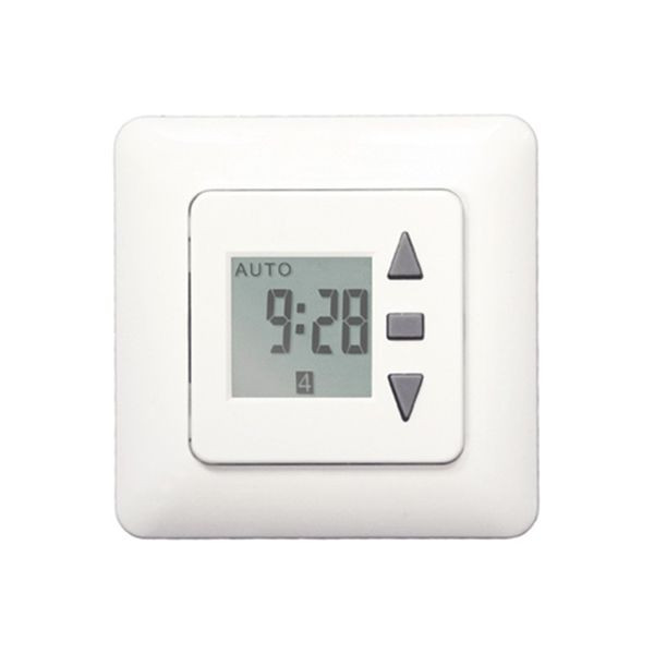 Die Rollladenzeitschaltuhr Tastor Konsum SD kombiniert höchste Bedienerfreundlichkeit mit Komfort und einem sehr guten Preis-/ Leistungs-Verhältnis. Er bietet ein Tages- und Wochenprogramm sowie eine Zufallsfunktion. Es lässt sicht zudem ein Sonnen- und Dämmerungssensor anschließen, mit dem die Zeitschaltuhr auch automatisch sonnenstandsabhängig schalten kann. Die Bedienung und Einstellung erfolgt über die 3 Tasten auf der Vorderseite. Beides ist sehr intuitiv und leicht zu erlernen. Das LCD-Display ist klar strukturiert und somit gut abzulesen. Optisch hält sich der Tastor Konsum sehr zurück und passt so gut in die meisten Umgebungen. Die standardisierte Bedienfläche (50x50) kann mit den entsprechenden Zwischenrahmen in fast alle gängigen Schalterprogramme integriert werden. Der Klemmblock für den Netz- bzw. Motoranschluss ist steckbar und kann so ganz einfach angeschlossen und im Nachgang eingesteckt werden. Bei der Lieferung liegt dem Gerät ein Standardrahmen in reinweiß bei. Farbe der Bedienfläche: reinweiß