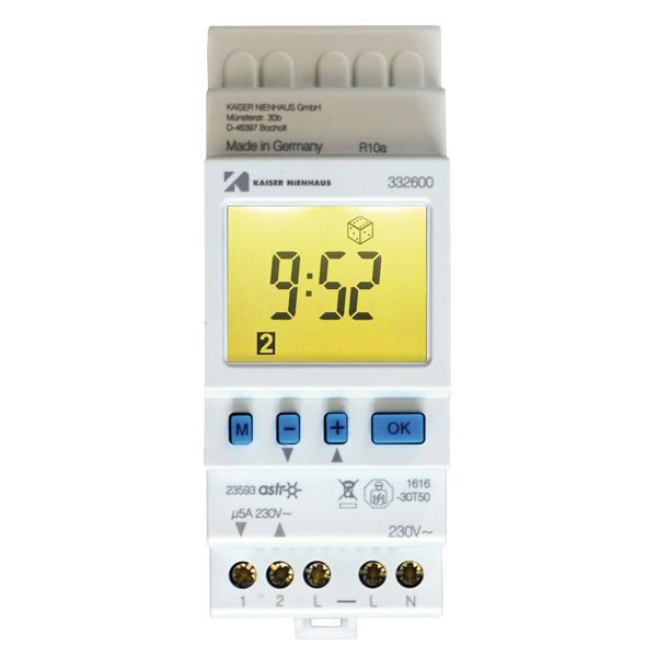 Der Tastor REG - Astro ist eine Rollladenzeitschaltuhr, welche zur Montage auf der DIN-Hutschiene vorgesehen ist. Die Uhr bietet umfangreiche Funktionen wie ein Tages-, Wochen- oder Astroprogramm und eine Zufallsfunktion. Für das Astroprogramm kann eine Korrekturzeit von +/- 2 Stunden eingestellt werden. Die Einstellung erfolgt über die 4 Tasten auf der Vorderseite. Diese ist sehr intuitiv und leicht zu erlernen. Das beleuchtete LCD-Display ist klar strukturiert und somit gut abzulesen. Dank einsetzbarer Knopfzellen-Batterie hat diese Zeitschaltuhr eine extrem hohe Gangreserve. Dadurch gehen bei einem Stromausfall z.B. keine Schaltzeiten verloren und eine erneute Einstellung ist überflüssig. Die Breite beträgt 35mm (ca. 2 TE).