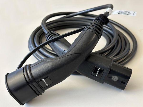 Mobiles-Typ 2-Ladekabel 22 kW; 7,5m; Typ 2 Stecker; Typ 2 Buchse; Farbe Schwarz