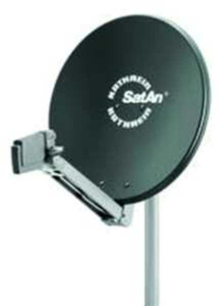 Der Reflektor ist pulverbeschichtet, Speisesystemhalterung aus verzinktem Stahlblech, kunststoffbeschichtet, Schelle aus Stahlblech feuerverzinkt, am Tragarm können ohne zusätzliche Bauteile zwei Universal-Speisesysteme zum Empfang von 3° bis 4° oder 6° auseinander liegenden Satelliten befestigt werden, mit Aufnahmeplatte.