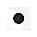 Anschlussblende mit 3-poliger Neutrik Einbaubuchse und Lötanschluss, Frontabdeckung aus Kunststoff, Vollblende, RAL 9010 weiß, NEU: werkzeugfreie Montage