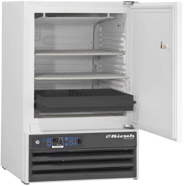 Medikamenten-Gefrierschrank, Schlüsselschalter, 1 Schubfach und 2 Roste, Leiselüfter, Schnellfrosteinrichtung, digitale Temperaturanzeige, potentialfreier Kontakt, Minimum-/Maximum-Temperaturspeicher, optisches und akustisches Alarmsignal, auch bei Stromausfall, schnellere Reaktionszeit bei sich ankündigenden Störungen dank proaktiver Alarmierung, Datenaufzeichnung auslesbar über USB-Schnittstelle mittels USB-Stick und Software, Minimierung der Temperaturabweichung im Kühlraum, höchste Lagersicherheit durch aufeinander abgestimmte Komponenten