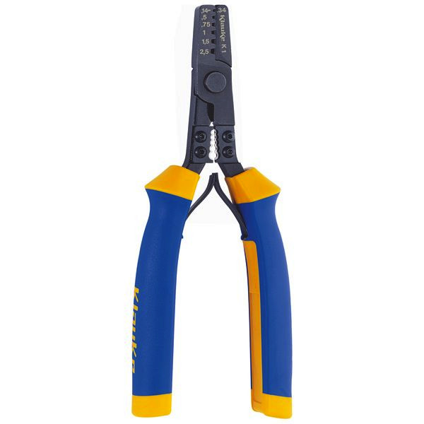 mit Abisoliervorrichtung und Drahtschneider Geeignet für Kastenklemmen. Federunterstützte Werkzeugöffnung. Mit Abisoliervorrichtung und Drahtabschneider. Je Querschnitt ein Pressprofil. Seitliche Hülseneinführung (Seitenpressung). Exakte Querschnittzuordnung. Ergonomische Handgriffe. Austauschbare Abisoliermesser.