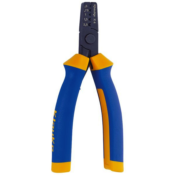 Für runde Klemmenöffnung. Federunterstützte Werkzeugöffnung. Je Querschnitt ein Pressprofil. Seitliche Hülseneinführung (Seitenpressung). Exakte Querschnittzuordnung. Ergonomische Handgriffe. 1,5 - 6 mm².