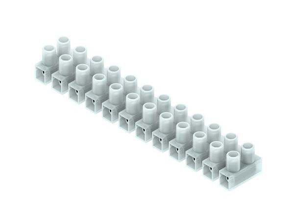Euro-Klemme nach DIN EN 60998, mit 12 abtrennbaren Klemmstellen, halogenfrei. Abmessungen (ca. Maße) H x B x L : 20 x 23 x 140 mm Klemmbereich eindrähtig, starr : 4 - 10 mm² Werkstoff Isolierteil : PA, flammgeschützt Werkstoff Klemmbolzen : galvanisch beschichtetes Messing Werkstoff Klemmschrauben : galvanisch verzinkter Stahl Max. Umgebungstemperatur nach DIN EN 60998 : T110 Nennspannung : 450 V Farbton : natur