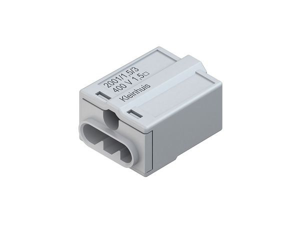 | Kurzbeschreibung | Schraubenlose Verbindungsklemme, Klemmbereich 0,75-1,5mm², 3fach, 400V, Kunststoff PA, RAL 7035, lichtgrau |