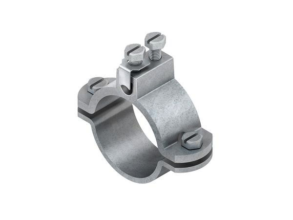 | Kurzbeschreibung | Erdungs-Rohrschelle mit Drahtschutz, 99,5x108x35 mm, für Rohr-Ø 60 mm, Stahl, feuerverzinkt DIN EN ISO 1461, mit galvanisch verz. Schrauben |