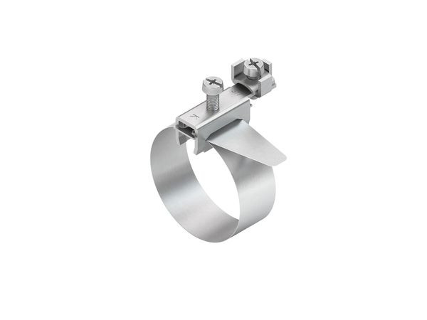 | Kurzbeschreibung | Erdungs-Bandschelle, längs/ quer,Bandlänge 412mm, f. Rohr-Ø 17,5-114mm, Messing, vernickelt |