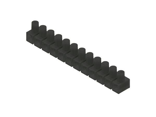 Verbindungsklemme nach DIN EN 60998, mit 12 abtrennbaren Klemmstellen, halogenfrei. Abmessungen (ca. Maße) H x B x L : 17,5 x 15 x 122 mm Klemmbereich eindrähtig, starr, flexibel : 1,5 - 4,0 mm² Anschlussmöglichkeiten eindrähtig : 5 x 1,5 mm², 4 x 2,5 mm², 2 x 4,0 mm² Anschlussmöglichkeiten starr, flexibel : 4 x 1,5 mm², 3 x 2,5 mm², 2 x 4,0 mm² Werkstoff Isolierteil : PA Werkstoff Klemmbolzen : Messing Werkstoff Klemmschrauben : galvanisch verzinkter Stahl Max. Umgebungstemperatur nach EN 60998 : T85 Nennspannung : 450 V Farbton : schwarz