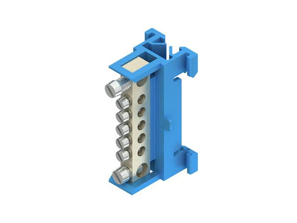 Kurzbeschreibung Null- und Schutzleiterklemme, mit 4 Klemmstellen, Kunststoff PA, RAL 5010, enzianblau
