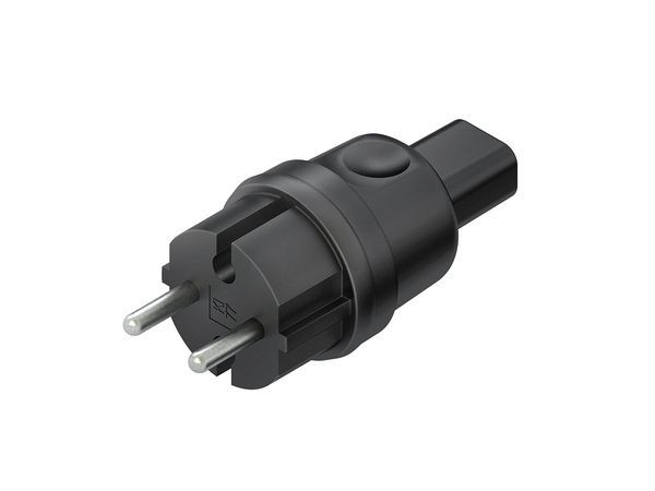 | Kurzbeschreibung | Schuko Konturenstecker, o. Schutzkontakt, IP44, H=100 mm, Außen-Ø 42mm, Elastomere NBR-Kautschuk, Farbe schwarz |