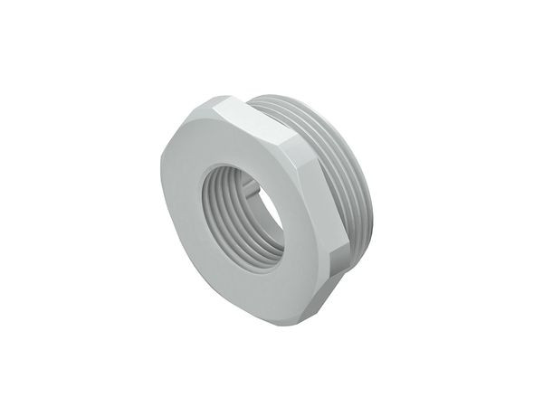 Kurzbeschreibung Reduzierring, Gewinde M20 außen, Gewinde M16 innen, Kunststoff PS, RAL 7035, lichtgrau