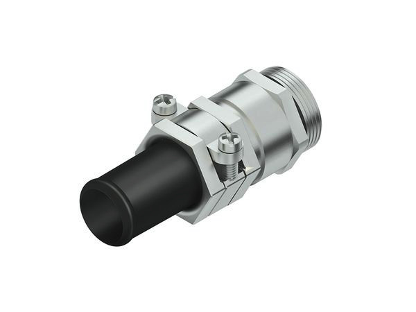 | Kurzbeschreibung | Kabelverschraubung ext. Zugent., Knickschutz, Pg 29, Kabel-Ø 19-23 mm, Messing, vernickelt |