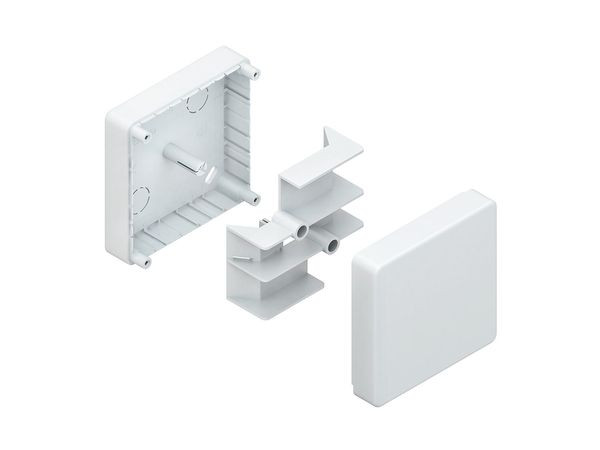 Abzweigdose, mit vorgeprägten Ausbrechperforationen zur Einführung der Elektroinstallationskanäle, halogenfrei. für Elektroinstallationskanal : HKL1022.3 HKL2020.3 HKL2030.3 HKL2031.3 HKL2052.3 Abmessungen (ca. Maße) H x B x T : 90 x 90 x 35 mm Werkstoff : ABS (Acrylnitril-Butadien-Styrol) Farbton : reinweiß RAL : 9010 (ähnlich)