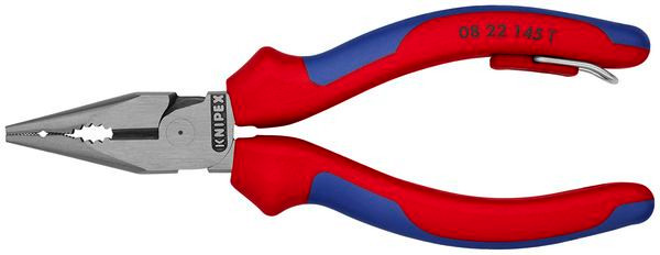 | Kurzbeschreibung | KNIPEX 08 22 145 T BK Spitz-Kombizange mit Mehrkomponenten-Hüllen, mit integrierter Befestigungsöse zum Anbringen einer Absturzsicherung schwarz atramentiert 145 mm |