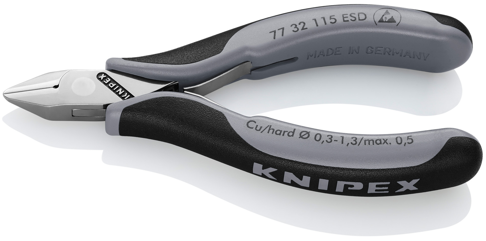 | Kurzbeschreibung | KNIPEX 77 32 115 ESD Elektronik-Seitenschneider ESD mit durchgestecktem Gelenk mit Mehrkomponenten-Hüllen 115 mm |