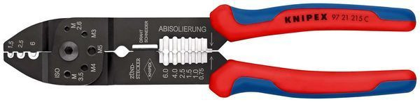 | Kurzbeschreibung | KNIPEX 97 21 215 C Crimpzange mit Mehrkomponenten-Hüllen schwarz lackiert 230 mm |