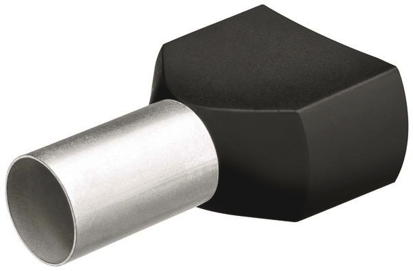 97 99 373 Twin-Aderendhülsen Einführtrichter aus Polypropylen. Wärmebeständig bis 105 °C. Werkstoff: E-Cu. Oberfläche galvanisch verzinnt. Mindestschichtdicke 3 µm. UL-Zertifiziert. Nenngröße: 2 x 1,5 mm². Inhalt: 200 Stück. Kennfarbe: schwarz. AWG 216 Kennfarbe schwarz L1 16mm L2 8mm d1 2,2mm d2 3,6mm d3 6,6mm S1 0,15mm S2 0,3mm Menge 200 Isolation PP Werkstoff Kupfer Oberfläche reinverzinnt
