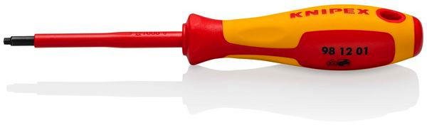 Kurzbeschreibung KNIPEX 98 12 01 Schraubendreher für Robertsonschrauben R1 isoliert mit Mehrkomponenten-Hüllen, VDE-geprüft brüniert 185 mm