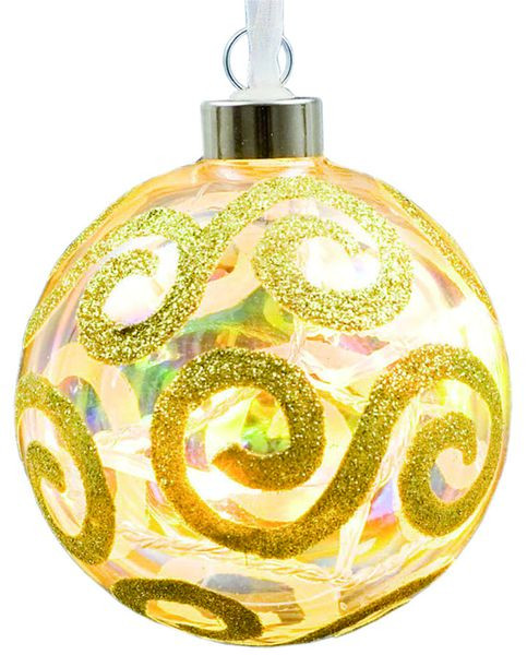 Gold-Dekor Ø 15 cm, Echtglaskugeln für Innendekoration an Fenstern usw., mit 10 warm-weißen LEDs im inneren der Kugel, Verbauch ca. 0,5 W, mit Innentrafo, Zuleitung 500cm