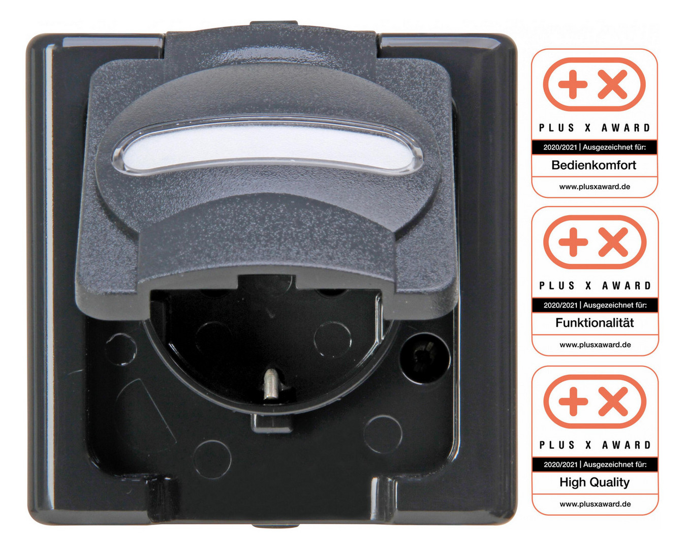 | Kurzbeschreibung | BLUE ELECTRIC - Schutzkontakt-Steckdose mit Klappdeckel, Farbe: anthrazit |