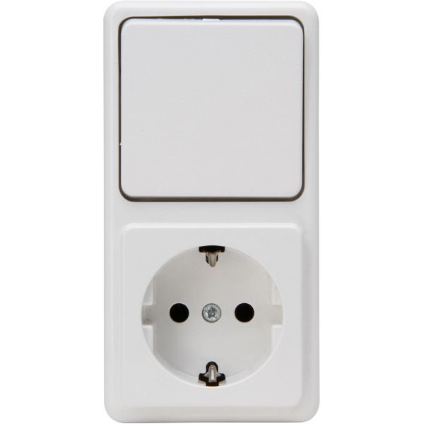 Aufputz, Kombination Universalschalter (Aus/Wechselschalter) und Schutzkontakt-Steckdose ohne erhöhten Berührungsschutz,10AX/16A, 250V~, Schutzart IP20, STANDARD, Farbe: arktisweiß