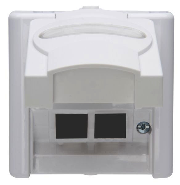 BLUE ELECTRIC Aufputz-Feuchtraum Leergehäuse zur Aufnahme von 2 standardisierten Keystone-Modulen mit dem Einbauauschnitt von 14,9 x 19,45 mm (BTR, etc.) oder 2 Metz Connect Module (E-DAT, C6A), Schutzart IP44, Farbe: arktisweiß Kompatible Module: - standardisierte Keystone-Module mit dem Einbauauschnitt von 14,9 x 19,45 mm (BTR, etc.) - Metz Connect Module (E-DAT, C6A)