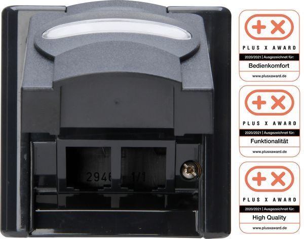 BLUE ELECTRIC Aufputz-Feuchtraum Leergehäuse zur Aufnahme von 2 standardisierten Keystone-Modulen mit dem Einbauauschnitt von 14,9 x 19,45 mm (BTR, etc.) oder 2 Metz Connect Module (E-DAT, C6A), Schutzart IP44, Farbe: anthrazit Kompatible Module: - standardisierte Keystone-Module mit dem Einbauauschnitt von 14,9 x 19,45 mm (BTR, etc.) - Metz Connect Module (E-DAT, C6A)