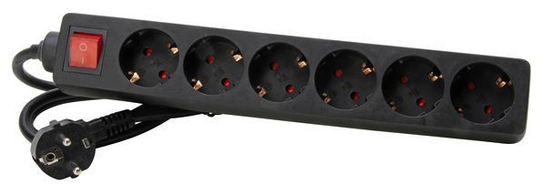 | Kurzbeschreibung | Steckdosenleiste, 6-fach, Schalter, 2-polig, 45° gedrehte Töpfe, erhöhter Berührungsschutz, Farbe: schwarz |