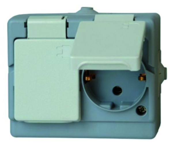 | Kurzbeschreibung | STANDARD - Schutzkontakt-Steckdose mit Klappdeckel, 2-fach, waagerecht, Farbe: grau |