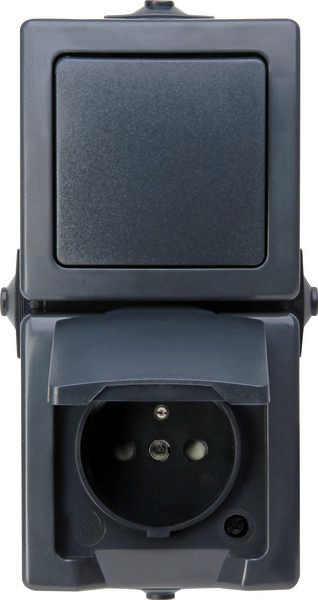 NAUTIC Aufputz-Feuchtraum Kombination, mit Mittenschutz-Kontakt, erhöhter Berührungsschutz, senkrecht, Schutzart IP44, Farbe: anthrazit