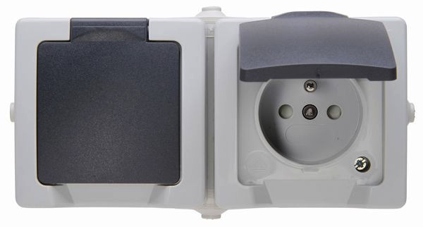 | Kurzbeschreibung | NAUTIC - Aufputz-Feuchtraum 2-fach Mittenschutzkontakt-Steckdose, waagrecht, erhöhter Berührungsschutz, IP44, Farbe: grau |