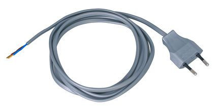 | Kurzbeschreibung | Europa-Zuleitung, Europa-Stecker und abgemanteltes Leitungsende mit Aderendhülsen, 2-polig, Farbe: stahl |